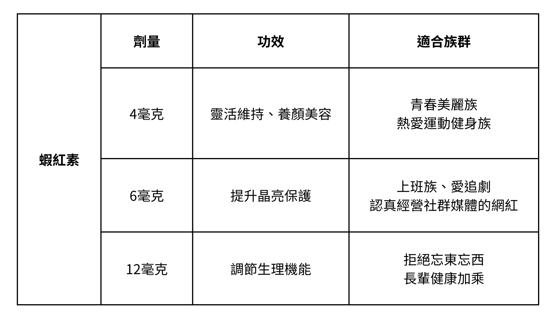 ◆ 蝦紅素讓人晶亮有感的6毫克