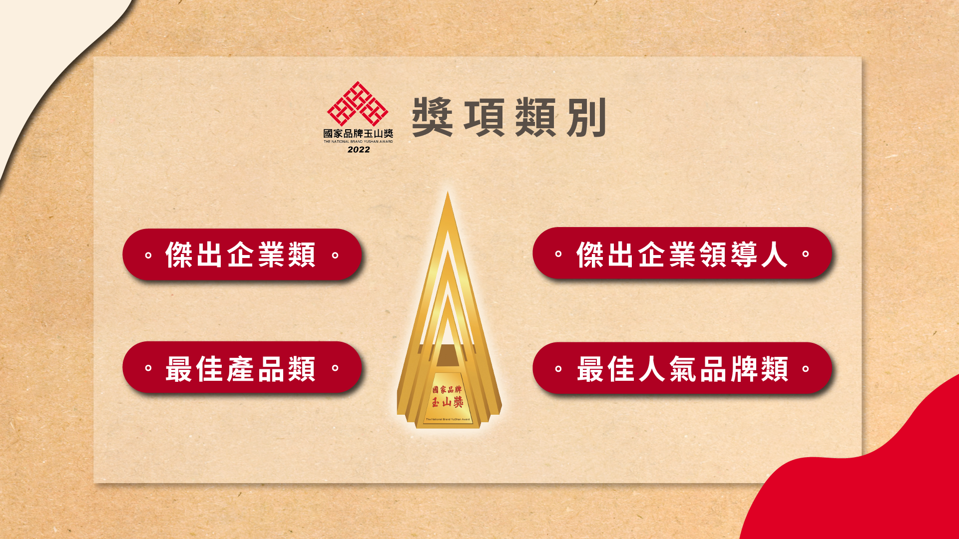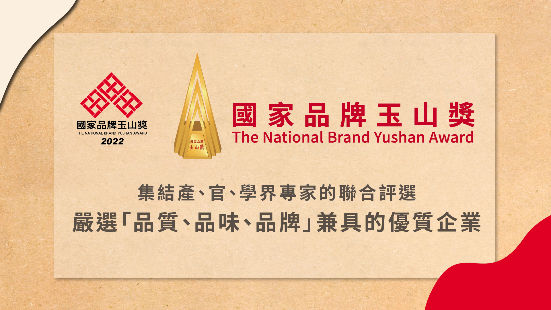 「國家品牌玉山獎」是台灣最具指標性、公信力的企業品牌獎項。是由中華民國國家企業競爭力發展協會所創辦的獎項,主要透過國家品牌玉山獎來激勵台灣企業、建立優良的國家品牌形象、樹立國家企業的典範。其評審團隊集結了產、官、學界各界菁英及專家,並由前國立中山大學 林財源副校長領導,以審慎、公正的方式與態度共同進行評選,針對研發、設計、品質、行銷、管理...等面向評估,並同時考量產業的發展、就業機會及公益回饋,來甄選出最具競爭力的傑出企業、最佳產品、最佳人氣品牌、傑出企業領導人等獎項。每年報名參選的件數屢創新高、競爭更激烈,也因此得獎的廠商可以說是出類拔萃。透過國家品牌玉山獎的嚴謹評選及表彰,可以讓企業專注於核心事業、進一步落實管理績效,甚至是利用突破傳統框架的思維再創新局,讓消費面、產業面都達到實質的提升,迎向「品質、品牌、品味」兼具的國家品牌優勢並提升國家整體企業競爭力!