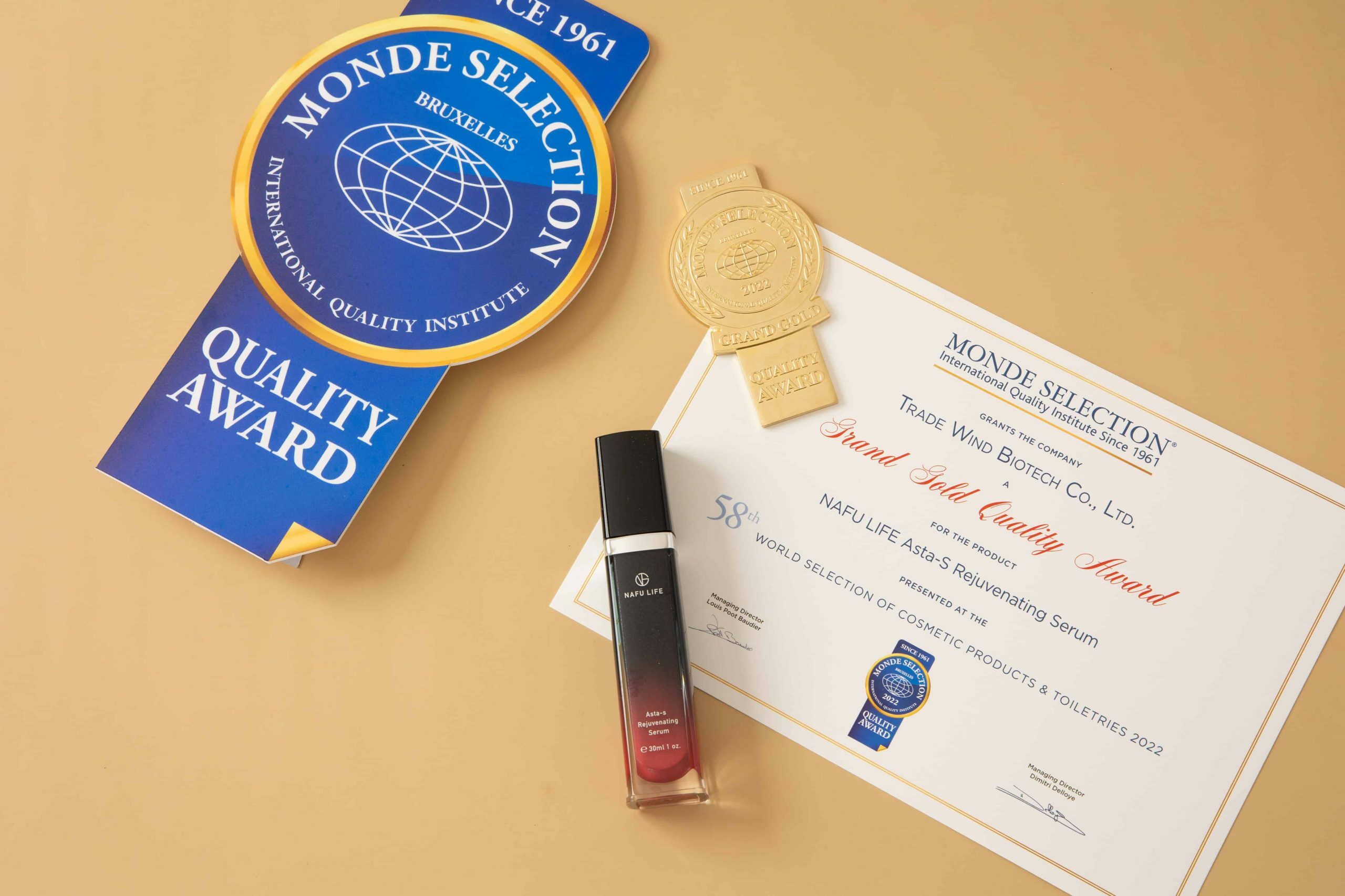 △NAFU LIFE全瑩生技Asta-S賦活精華榮獲2022 Monde Selection特級金獎。