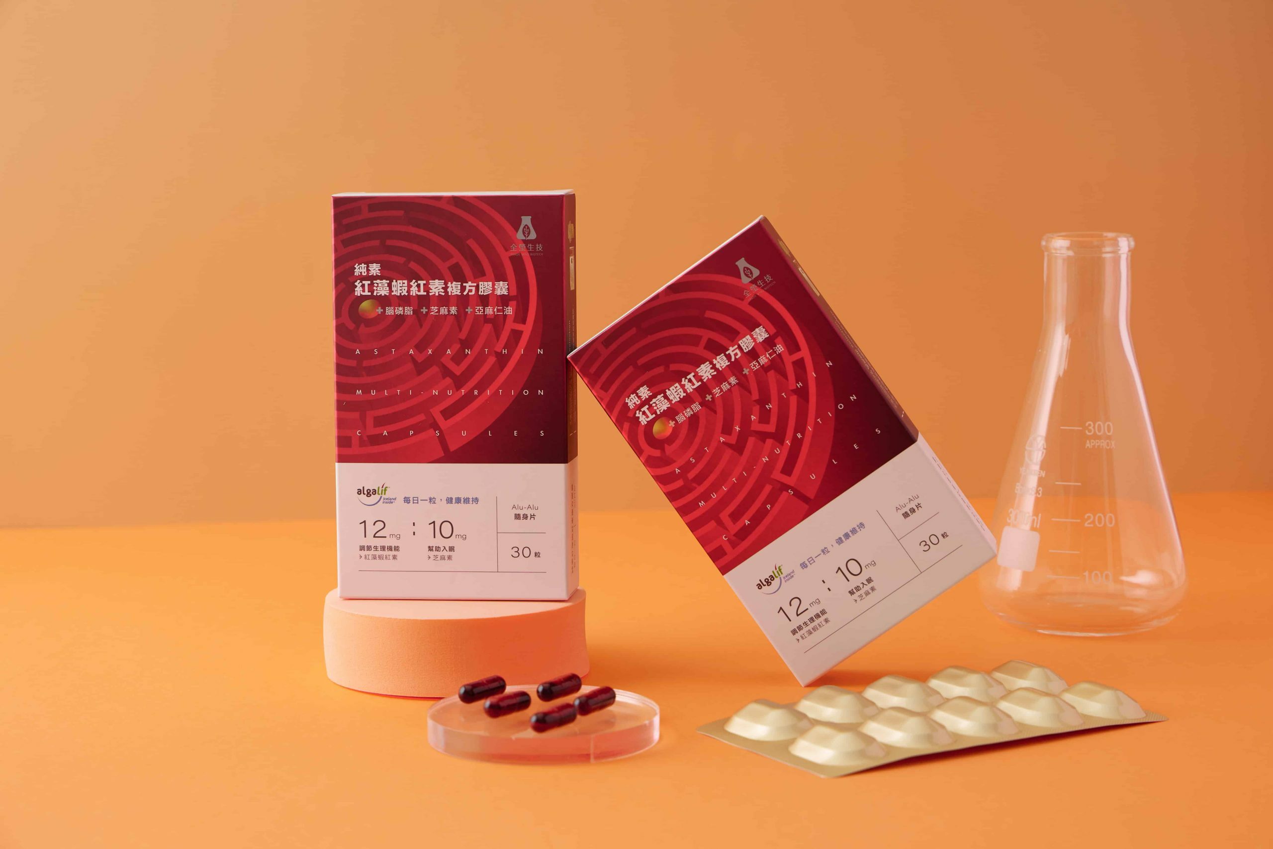 在保健食品上,標榜依據文獻研究添加足量蝦紅素,滿足消費者對於調整體質與幫助入睡的需求,不僅在配方設計上多加用心,在包裝上仿照藥品規格採用Alu-Alu避光片,減少環境對於膠囊內有效成分的破壞。