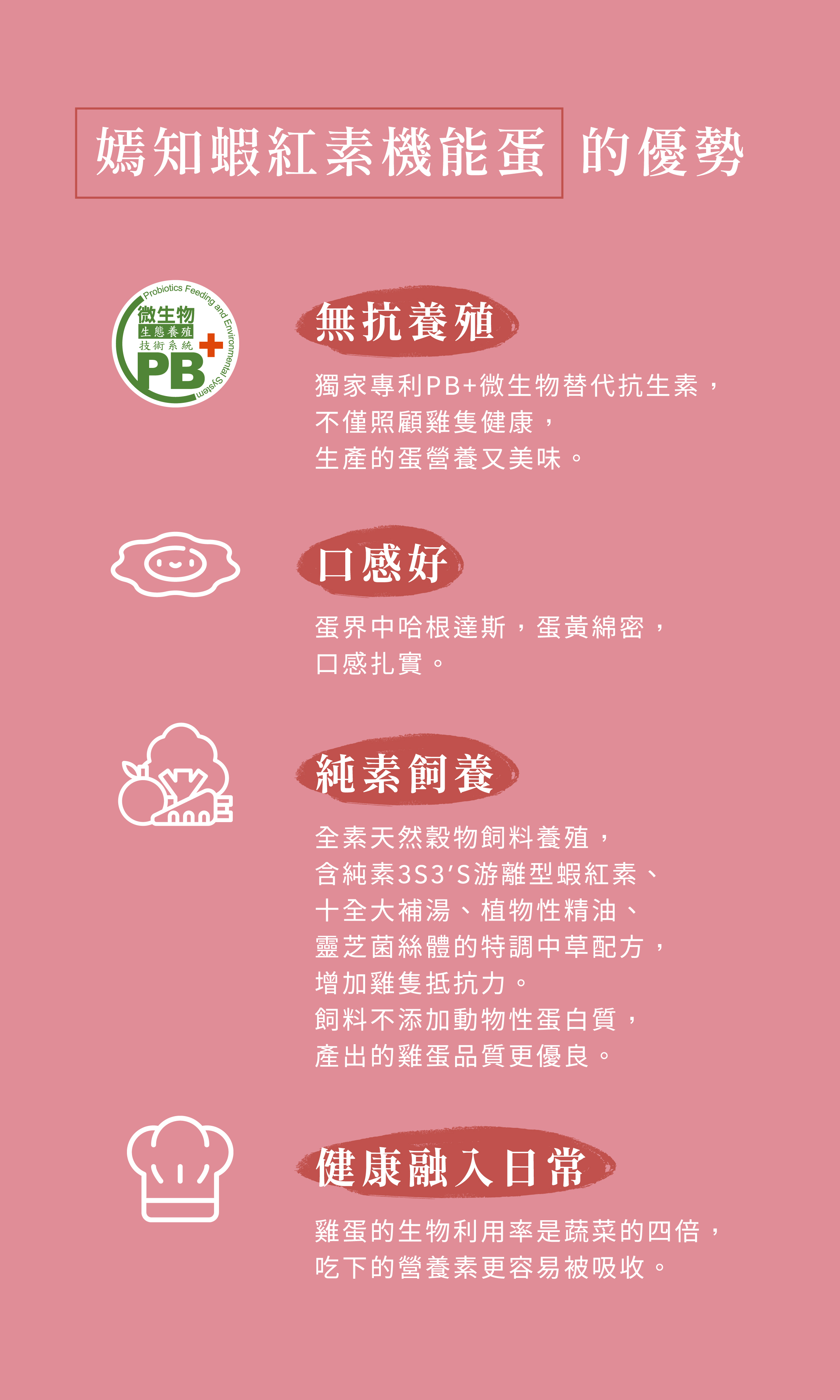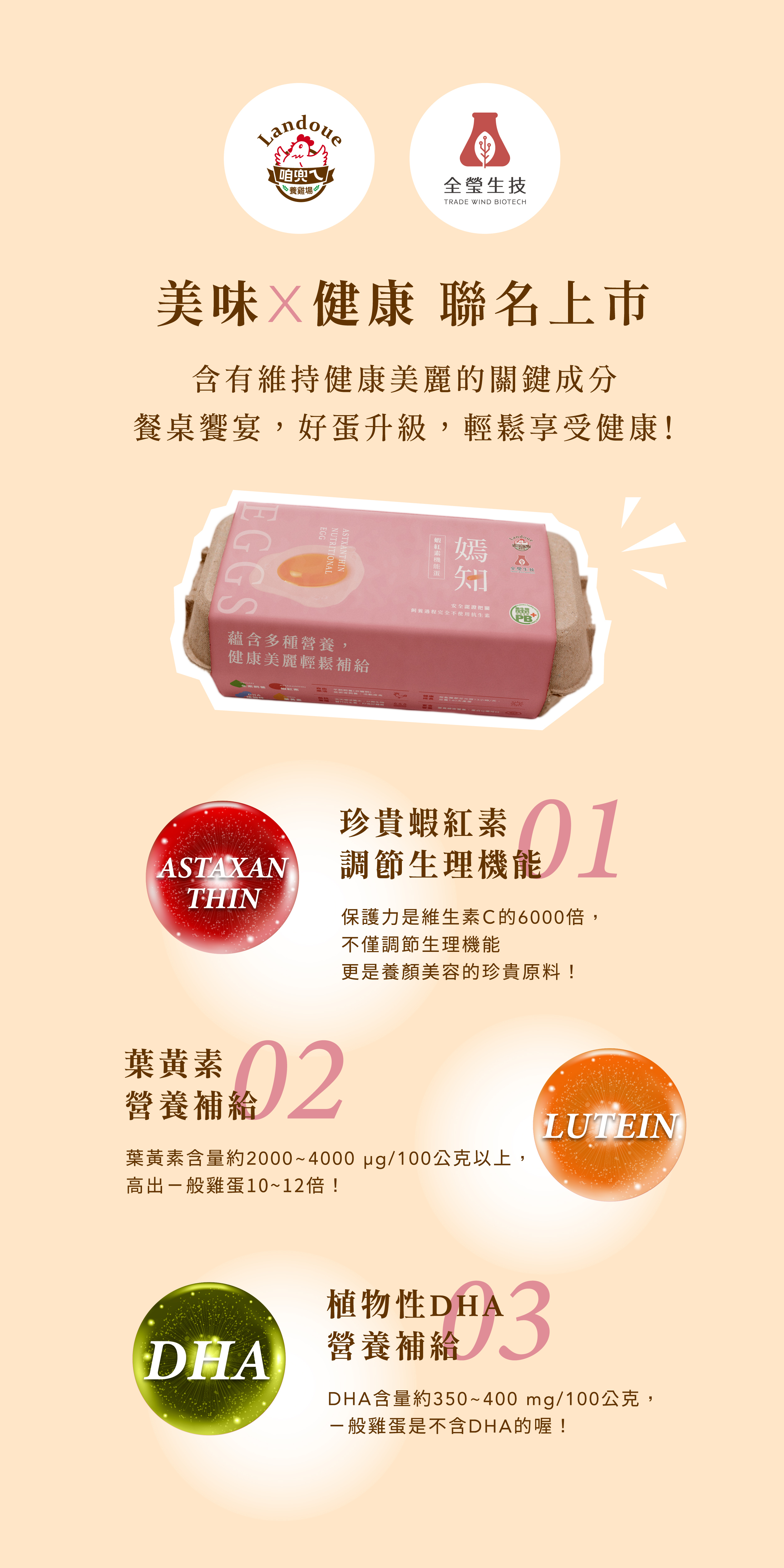 • 含蝦紅素&DHA&葉黃素的蝦紅素機能蛋,健康美麗輕鬆補給