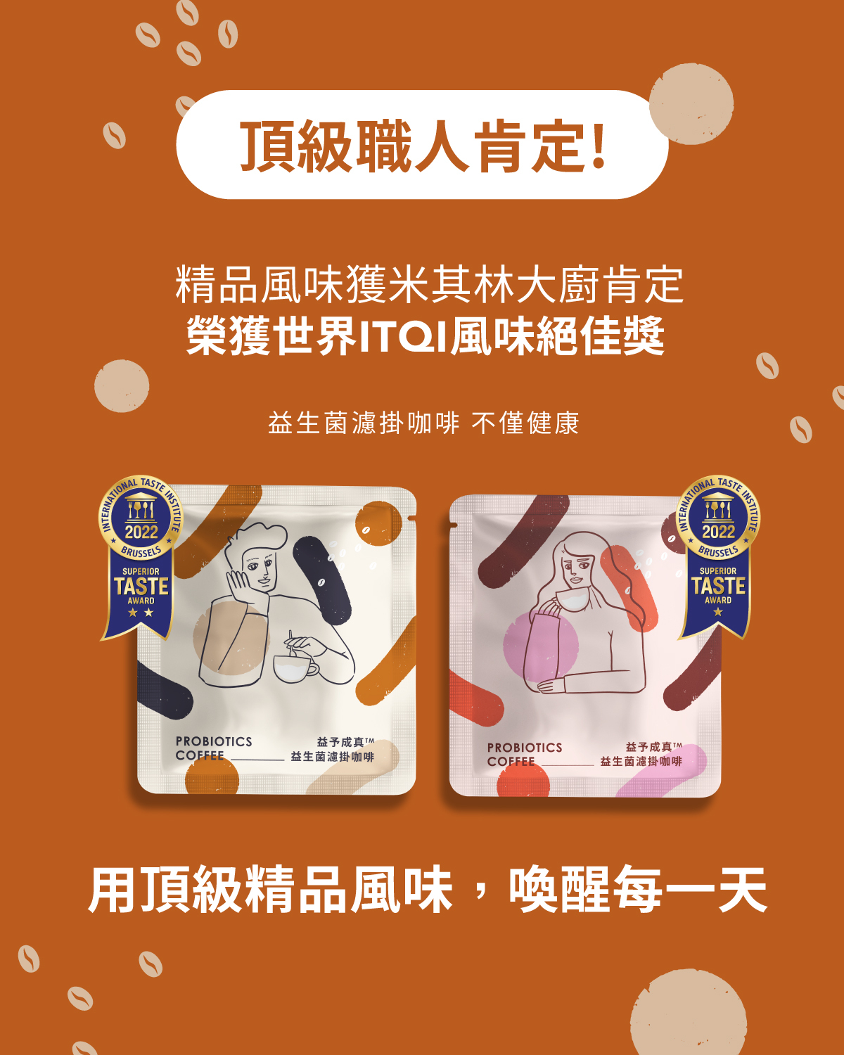 ※全瑩生技特有三益菌配方,具「可耐高溫之益生菌飲品沖泡包」專利